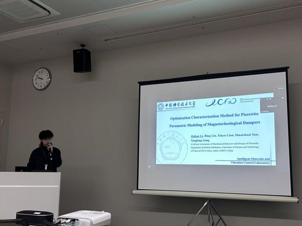 李嘉豪作了题为“Optimization characterization method for piecewise parametric modeling of magnetorheological dampers”的口头报告。