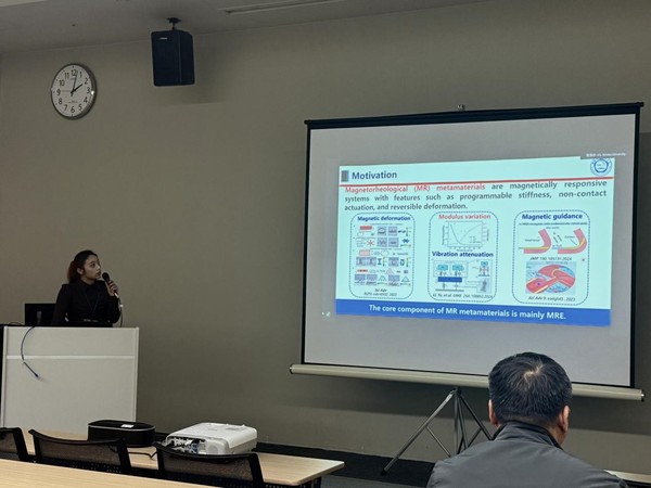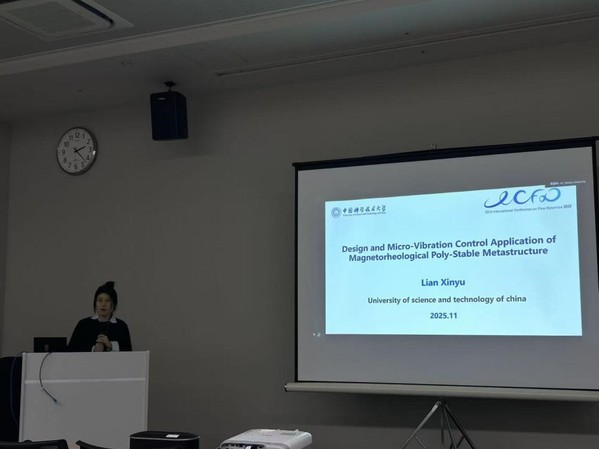 连芯玉作了题为“Design and micro-vibration control application of magnetorheological poly-stable metastructure”的口头报告。