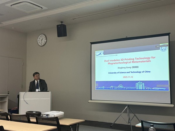 龚兴龙教授受邀担任智能流体&软物质及前沿应用分会场主席,并作了分会场邀请报告“Dual-modulus 3D printing technology for magnetorheological metamaterials”。
